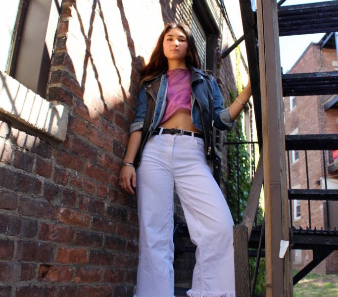 She matched the aesthetics of the top with a pair of white, cut-off flared jeans. Not only do the flared jeans give the entire look a livelier form, but it also gives it another layer of texture. The fray at the bottom contrasts with the soft look of the pink shirt.