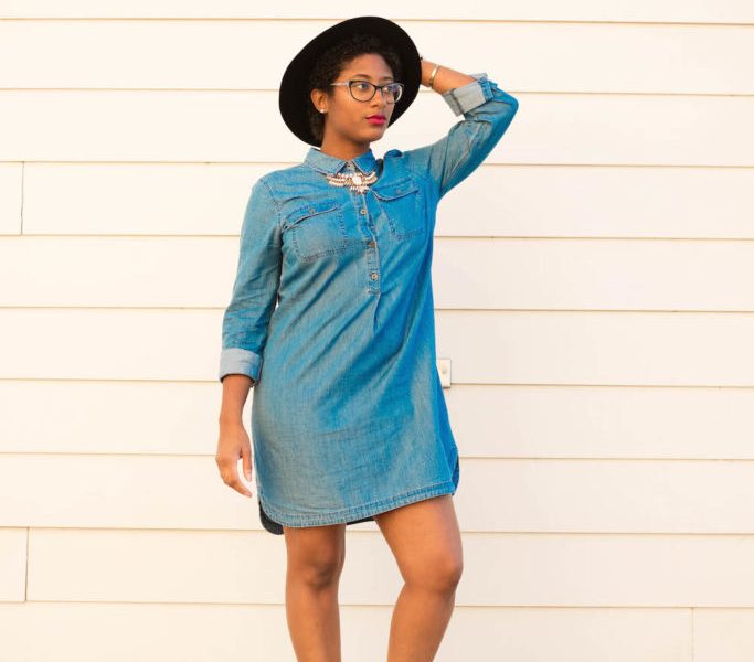 In my look above, I decided to go with a timeless long-sleeved denim dress. This denim dress is a perfect length to wear year round. Just add tights underneath with a cute heeled boot during the winter. I chose to pair my dress with a comfortable pair of low-top, black and white converse. The converse makes this outfit great for running errands. I also have a few accessories that I wear faithfully with every outfit. This includes a pair of stud earrings, a silver and gold Michael Kors linked watch, and a gold bracelet. However, in order to jazz the outfit up and make it a little more dressy casual, I wore a statement necklace which is a go to for someone who is not fond of sporting numerous accessories. By wearing a statement piece, it adds flair to any outfit. I have a thing for hats too, so I buy them and never wear them. I thought it was fitting to finally wear this felt fedora hat for this chic casual outfit. Lastly, but certainly not least, I finished the dress with a gold embellished black Tory Burch clutch. By adding a pop of fuchsia colored lipstick, the look really comes together, as a girl is never fully dressed without lipstick.