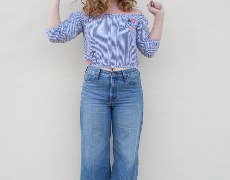 For my final look, I paired my culottes with an off-the-shoulder top, another hot trend. This casual and bohemian look is perfect for a breezy summer day. Wear wedges to add some height, as culottes can make one look much shorter than they really are.