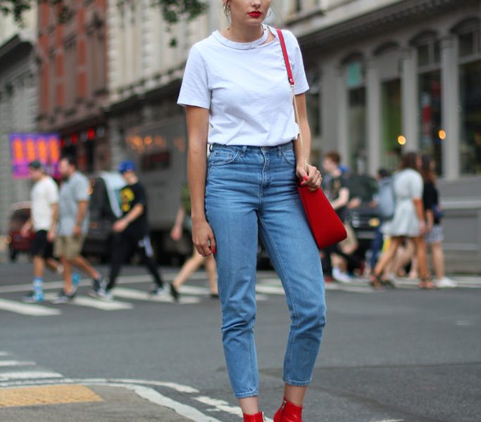 By far the easiest of the three ways, accessorizing is a 10-second way to add red to your jeans and T-shirt uniform. I’ve been obsessing over a pair of boots from Zara, but jewelry, bags, scarves, and belts can also add a pop of color to your neutral looks.