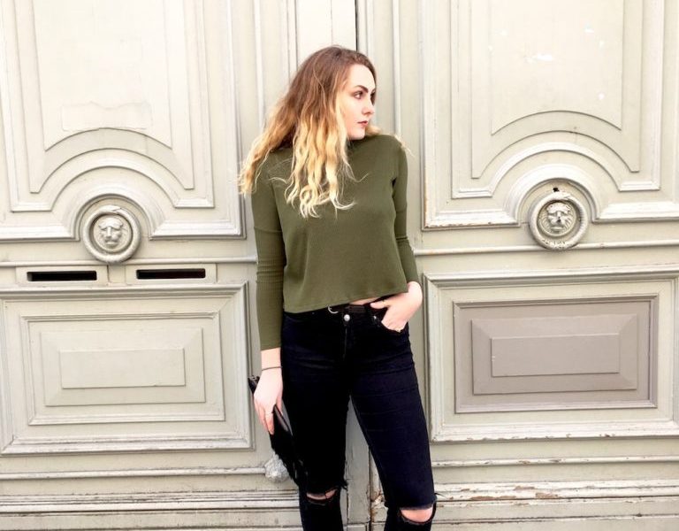 5—Do some DIY. So I bought my favorite pair of black jeans on sale for $25 at Gap. I ripped holes in the knee myself because every other pre-ripped pair I found was too expensive. Sure, you should practice a bit to get confident with scissors but as long as you take your time, DIYing is easier than it looks. P.S. I am the clumsiest person I know so if I can cut rips in my jeans, you can too.