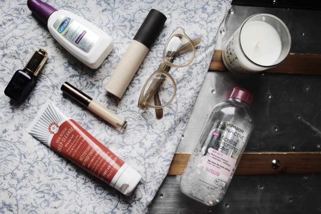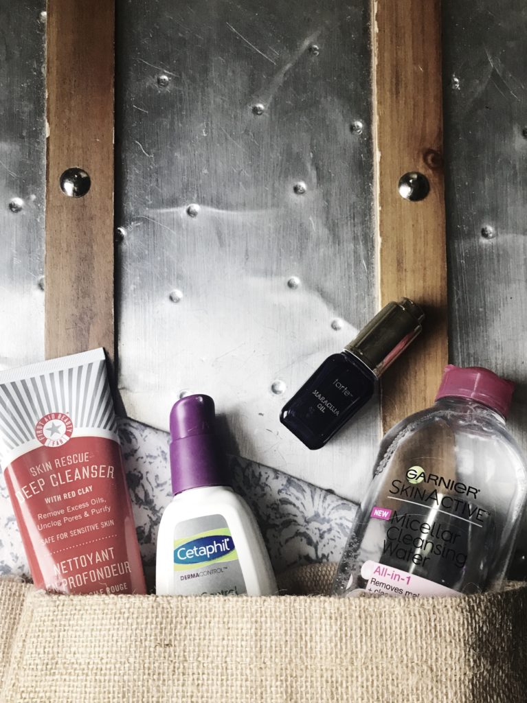 1—Cleanse your face. After a long day of running around, cleaning your face is crucial. I found that if I’m wearing makeup, I need to wash it off before I can actually cleanse my skin. Use micellar water and a cotton pad to remove your makeup; then use a red clay cleanser to deeply clean your face.