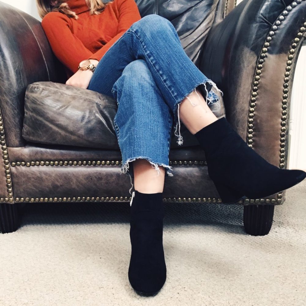 6—Per-suede me. These Black Suede Zara Boots work with every outfit because of the simple shape. You can pair them with any pair of pants of any color. Try a turtleneck and fray-hem jeans.