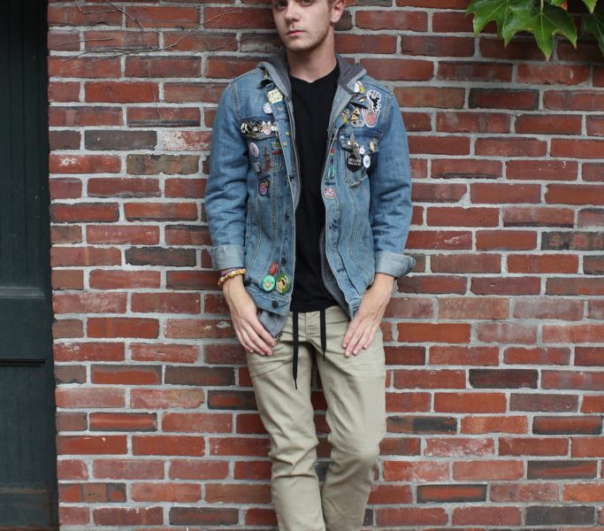 Adding pins and patches to any piece, especially denim, is very on trend right now and is a great way to amp up your look. And that’s exactly what this Fashionisto did. Pinning things that represent who he is and what he likes to the jacket gave the piece that little something it needed to stand out. Paired with chinos, an edgy tee and a pop of color with bright red converse tied the look together for a casual cool effect. The neutral colors throughout his outfit bring emphasis to the colors of his pins and patches. The hoodie paired underneath is the perfect layering piece. It adds a more casual factor to the look while removing it completely gives it a city ready edge.