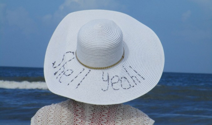 On the bottom, I have a pair of American Eagle Outfitters white skinny jeans. If you don’t already own a pair, you should. I’ve completed my look with gold accessories from my shoes to my necklace and sunglasses. To top it all off, why not throw on a floppy straw hat to complement the gold and add another touch of white?