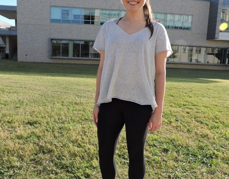 With a pair of comfortable leggings, cute Converse and a simple T-shirt, this Fashionista is ready to conquer the Texas heat; since she has her hat by her side (well, on her head), this Fashionista won’t let the sun ruin her day. To make her outfit have some spunk, she also decided to tie her hair into a ponytail–not only does it help show off her face, it truly ties in the entire outfit in together by making one cohesive, chic statement.