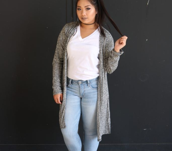 In this look, I paired my favorite light wash jeans with a plain white V-neck. One of my favorite things about this outfit is how simple it is to put everything together. In order to make this subtle, basic look a little more edgy, I paired it with some black booties, a heather grey cardigan and a choker. As a ’90s kid, I never thought that chokers would come back in style but here we are in 2016 with them coming back in full force. I can tell you right now that I am 100 percent not complaining, because the choker has become a staple in my everyday wardrobe which makes any outfit go from dull to edgy and cool.
