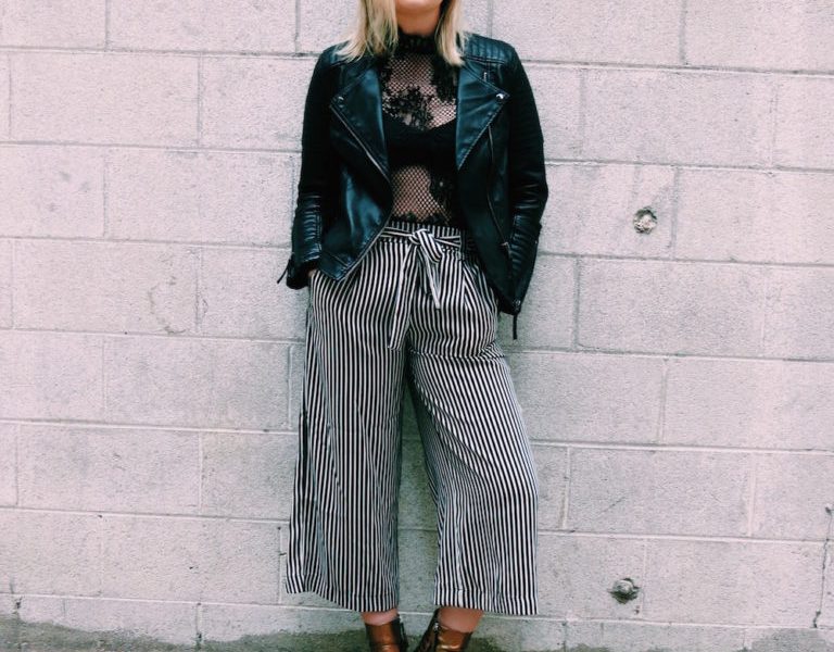 Of course, I had to tap into this collection and bring it over to my closet. My Rodarte-inspired outfit included lace, mesh, stripes and some gold booties. I paired a see-through mesh shirt with lace details and stripped culottes. A bit chilly for a November in Chicago, but I got over it—sometimes we suffer for fashion! I made my outfit a little different by toughening up this look with my accessories. I had just bought these sunglasses by LeSpecs and added them to my outfit. I loved their modern take on these cat-eye sunglasses. I threw on a faux leather biker jacket to keep me warm, as well as add an edge to my outfit. The gold booties brought in another element from Rodarte’s collection and gave a pop to my all black and white ensemble. To top it all off, I wore my gold vintage Chanel earrings which are my go-to statement earring. While Rodarte’s collection is whimsical, and I made my look more rock and roll, the eclectic nature of their fall collection still applies to my outfit. Taking inspiration from the runways is a great way to shake up your wardrobe when you in a rut. Designers take inspiration from everywhere, so we might as well do the same.