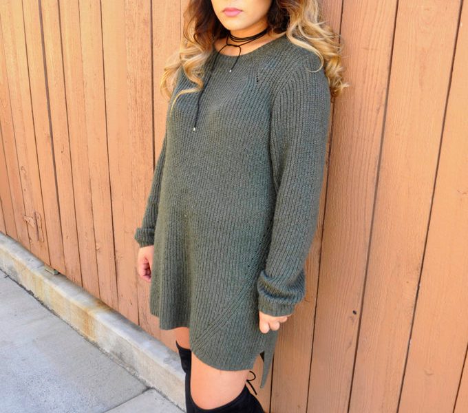 Oversized sweaters that can turn into sweater dresses are my go-to for comfort and style when I want to dress up but need a quick outfit. The overall theme of my outfit is long so I tried to stay consistent with pairing this oversized sweater with thigh high boots. These have been a recent trend lately and I am absolutely loving it! Thigh high boots go well with many outfits and they are definitely bold and fashionable.