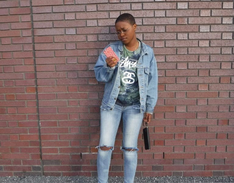 I ran into this Fashionista on the streets and instantly lit up with excitement! Not only was she dressed well, but she was clothed in brands that I love, such as Stüssy and Vans. This Fashionista created her street-savvy look by using a Stüssy graphic tee, distressed skinny jeans, an oversized Levi’s jean jacket, and Vans checkerboard slip-ons.