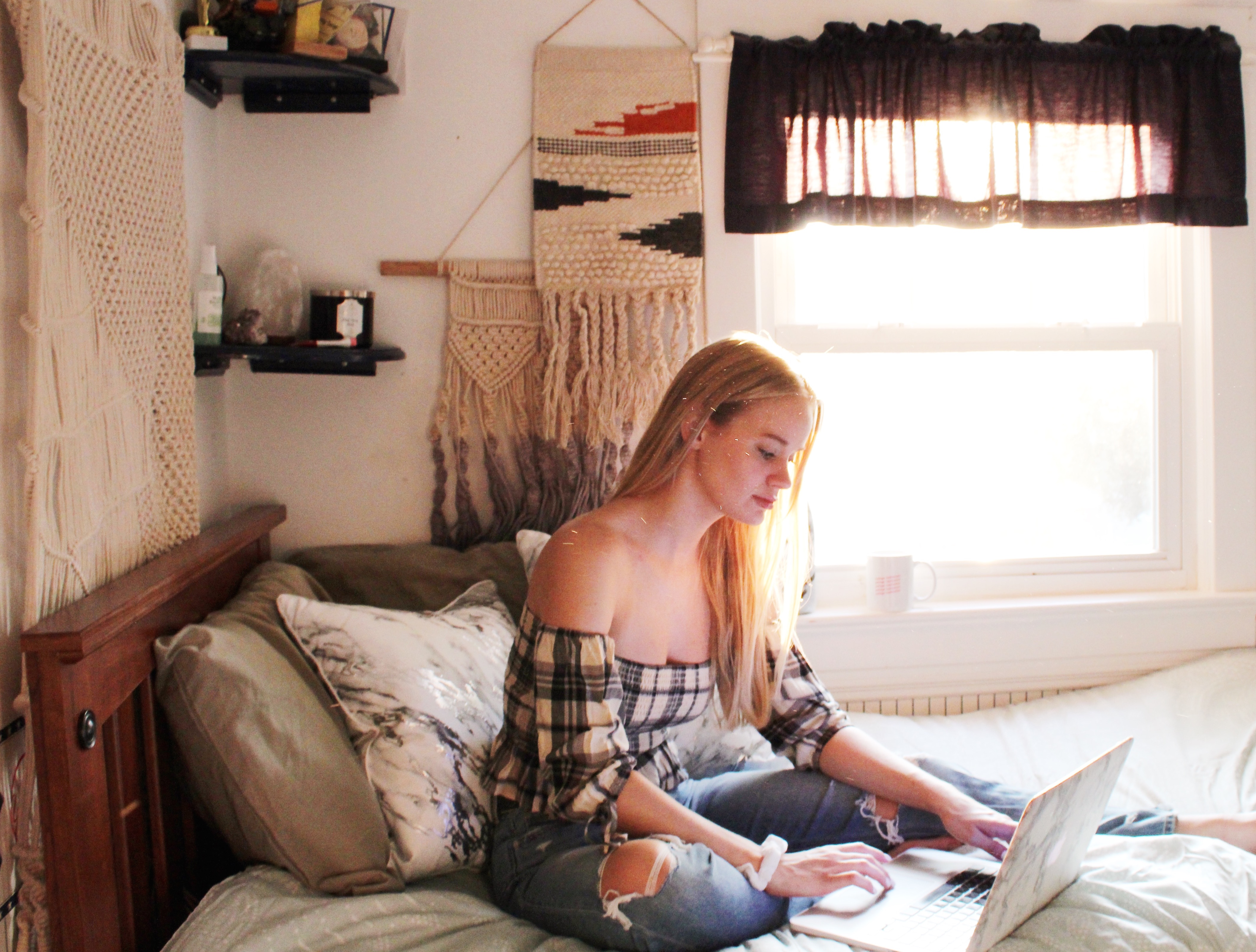 “My fashion style is reflected in my décor through the simple boho vibe I love. I try to keep everything in my life very cohesive. Whether it’s my outfit, room décor, or social media, I like my style to remain constant.”