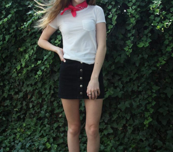 Looking for a way to do something different with your everyday look? Bandanas are the newest trend this summer and this Fashionista killed her look! The key to the bandana trend is to make it seem effortless by pairing it with pretty basic pieces. This Fashionista did that by only wearing a plain white T-shirt and a black button-up skirt. Another part of this look that I’m absolutely obsessed with are the adidas Superstar sneakers that this Fashionista chose to wear with this look. Sneakers are the perfect way to make an outfit much more casual.