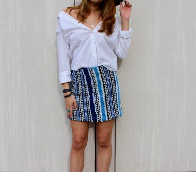 This Fashionista crafts an adorable top out of a your typical white button-down. By cuffing the sleeves, unbuttoning the first few top buttons and pulling the top over her shoulders, she crafts a trendy, yet easy way to put a spin on your basic white button-down. Whether it’s your boyfriend’s, your brother’s, or even your father’s, this look is one that anyone can get their hands on. This Fashionista transforms a typically modest and structured piece into a fun, off-the-shoulder top.