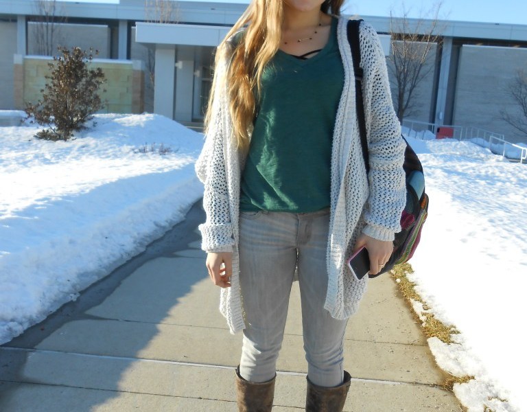 “Look good, feel good, do good.” These are some words of wisdom from this Fashionista who caught my eye walking through campus in her fun, relaxed look. She explained that depending on her mood, her style varies day by day from hipster to hippie and from a preppy to a boho look like this one. As you can see, it’s the use of accessories that allow her to fully encompass each style.