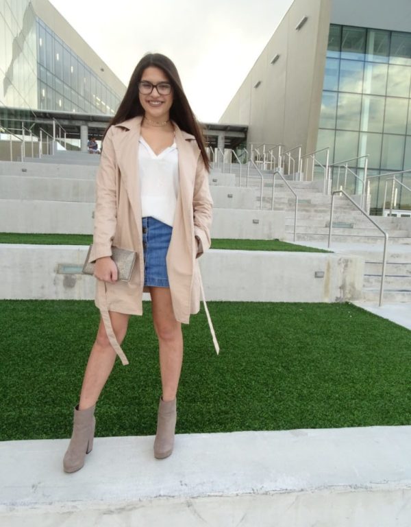 This Fashionista went for a simple color ankle boot, but the fact that they didn’t really match the color scheme of her clothing made them pop. Now, let’s talk details. How much are you loving the cape trench coat trend? I love how this Fashionista paired it with a simple, denim mini and white shirt! It adds a sense of elegancy and personality to such a plain look.