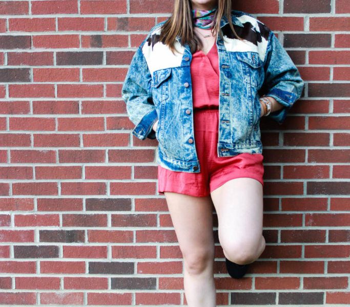 What I love about this outfit (other than that awesome jacket) is how perfect it is for transitioning from summer to fall. By choosing the right shades and pieces this Fashionista has got it down pat! By pairing layering pieces such as the denim jacket and scarf, with booties to represent fall and a romper that is a staple summer piece, she has the perfect outfit for the cooler weather.