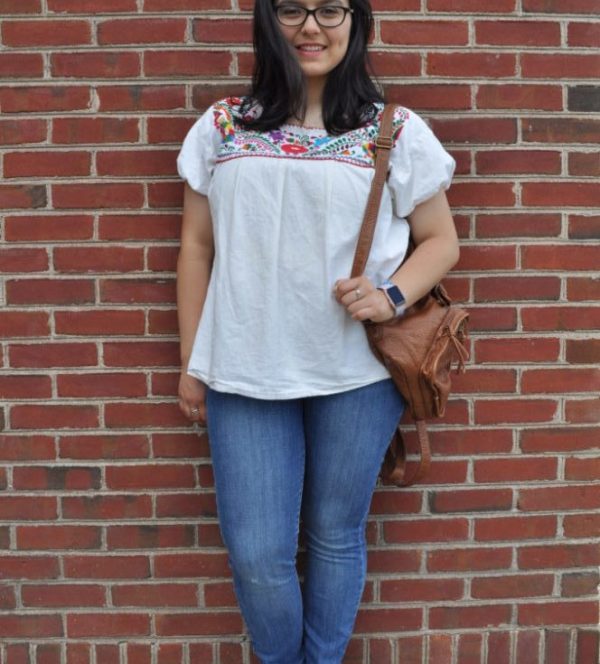 This Fashionista shows us just how to do that through the little details. She pairs a beautifully embroidered top with a pair of medium wash jeans. Adding some luxurious hair and a pair of the [infamous] Jack Rogers, she pulls the outfit together. Finally, to put a cherry on top, she accessorized with the perfect pieces. Her white, loose-fitting top allows this Fashionista to stay cool walking from class to class, but the stunning embroidery adds a little ‘oomph’ that a plain white T-shirt could not accomplish. Full of summer colors, the embroidery on her top fits perfectly with the season. She adds more detail by sporting a pair of Jack Rogers—the whip stitching creates remarkable and unique patterns. These small details distinguish her look!