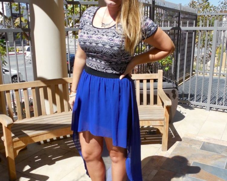 I admire this Fashionista’s take on sorority rush. While most girls opt for a dress and heels, I spotted this stylish Fashionista pairing a tribal crop top with a blue high-low skirt. The crop top was a daring choice, but paired with the skirt, she can pull it off effortlessly. The high-low skirt adds depth to the outfit with its altering length and flowy appearance. I love how these skirts defy fashion norms and add a new spin on old ways. It’s more like a “party in the front, business in the back” kind of feel with this outfit; while the front of the skirt radiates a fun, flirty vibe, the back of the skirt gets down to business with a more modest length.