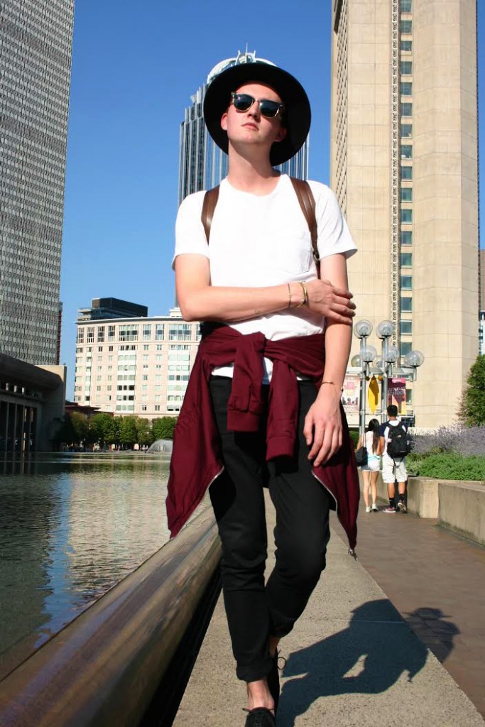 It’s the little details that can really make a statement when it comes to putting together an outfit. This Fashionisto is no stranger to accessorizing due to his job as a stylist at Club Monaco, a high-end casual clothing retailer in the Prudential shopping center. What I love about his look is how he was able to wear simple black pants and a white mesh T-shirt, yet he managed to add fun accessories that make him look front row ready for a fashion show.