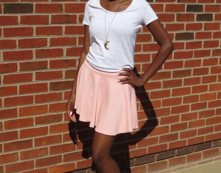This Fashionista knows exactly how to make outfits interesting with accessories. At first glance, her outfit may seem very basic. While her blush skater skirt and pale gray T-shirt are very pretty, they are very understated. Now, look closer. There are so many different styles being represented. Her grey Vans add a small, sporty touch to her otherwise girly outfit. Her tribal-like jewelry adds a bit of mystique. Her jewelry reminds me of astrology and constellations. Now, putting together all the details, this Fashionista’s look is in no way generic. It’s very intriguing. While this ensemble is mostly girly and feminine, the accessories bring many unique aspects to the look. While it may not catch your eye right away, this outfit will definitely turn heads. It will definitely make people curious about the Fashionista herself.