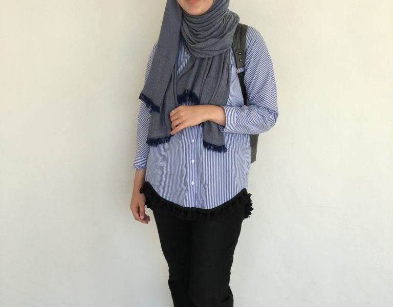 Although the tassel-action has you looking twice, her backpack doesn’t fail to make you wonder where she got it from. Her grey, faux-leather backpack is clean-cut and chic. It pairs perfectly with her grey scarf and white sneakers. Her tailored look is cool and comfortable for a day full of classes. I love how cohesive her outfit looks. It’s almost as if the pieces were made to be worn together. The best part? You can separate each piece and wear them on their own!