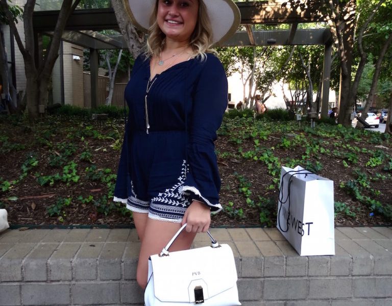 Though anyone can work a monogram, not everyone is so particularly blessed with a head for hats. However this Fashionista had no such problem, and styled her wide-brim straw hat wonderfully. The wide brim and gold edging really made this sophisticated hat stand out, topping off her outfit—literally. Though it stands true bigger may not always be better (or practical), there’s something out there for everyone (where brim size is concerned); a great accessory for taking summer city chic.