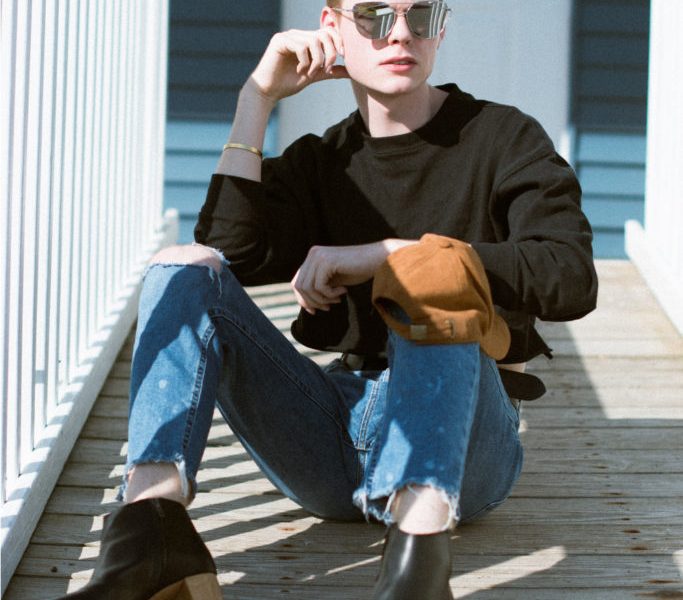 Accessories are everything. I was so stuck on the two-inch wooden heel of the boot that I wanted to complement it. To pull this off I paired the shoe with my suede cap to add color and texture to this gender-neutral look. I have pale blue eyes so to avoid squinting every second I threw on my beloved Forget Me Not Aviators ($25). These sunglasses provide a feminine touch to my outfit, at the same time the aviators frame and strengthen my jawline and cheekbones.