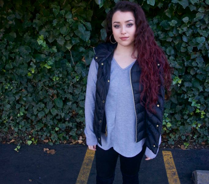 Despite the winter days ahead of us for the next few weeks, this Fashionista embraces the occasionally gloomy weather and lets it inspire her makeup look. The bright pink hair is a reminder to all of us to continue to embrace bold colors on even the bleakest of cold weather days. With this in mind, go forth and style your way out of the winter blues!