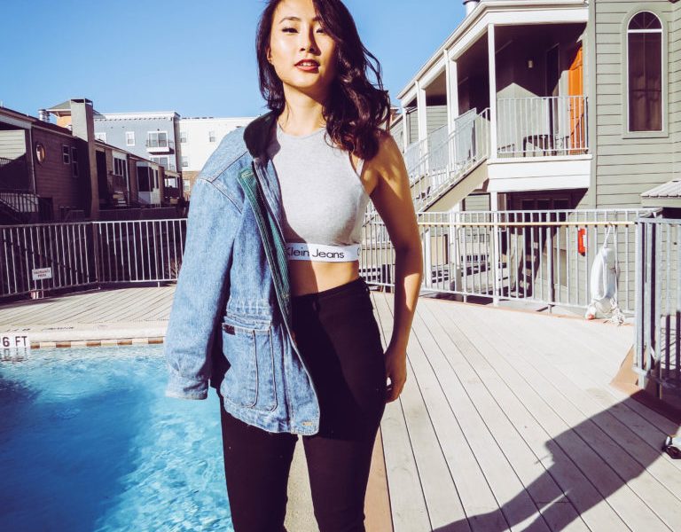 To top it all off, she has a great sense of style. She is giving us some serious vintage vibes with her oversize denim jacket and Calvin Klein bralette—if you don’t have one, you should definitely pay a visit to Urban Outfitters ASAP. Her knit socks add a little pop of color to her ensemble and compliment the burgundy in her hair. Another reason to opt for this reddish hair tone: everyone, and I mean everyone, looks good in burgundy. This deep tone of red is easy to match with, whether it be clothes, shoes, jewelry, or even makeup.
