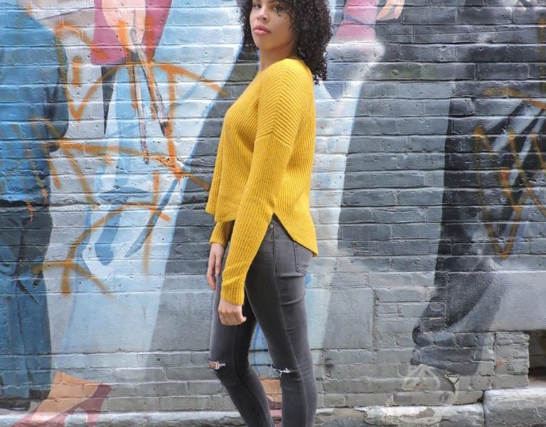 For this Fashionista, simplicity is key when choosing an outfit. My favorite part of the look is the pair of ripped jeans. With a soft tone color, you can pair it with a variety of textures and colors to achieve any look.