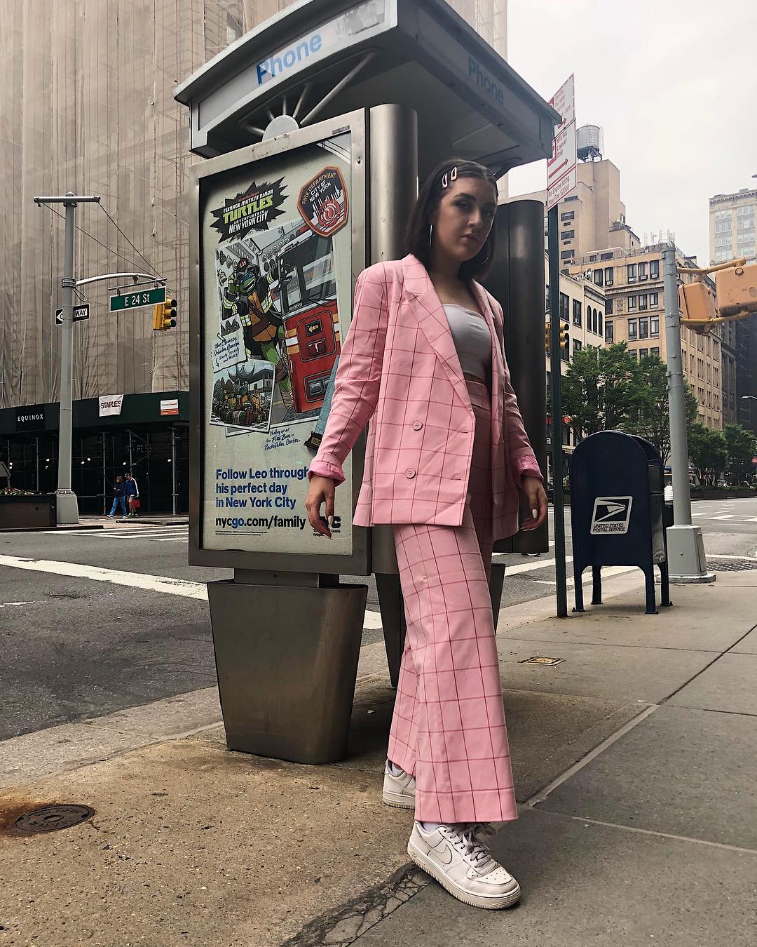 I’m sure we’ve all stocked up on biker shorts this past summer. Let’s reintroduce them into our wardrobe this fall by pairing them with a grid-printed blazer.