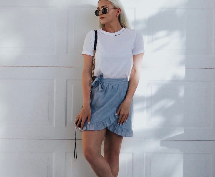 The tie on this skirt is one of my favorite elements about it, second to the ruffle detailing. It adds the perfect amount of detail and frill to the skirt without overdoing it, all while creating this adorable pleated look on the bottom. A chambray skirt is also an amazing piece to take on vacation with you because of its day-to-night functionality. Not only would it be cute and easy to throw on over your swimsuit bottoms with a pair of flip flops before heading to the pool, but could also transition to night with a lace bralette or crop top and a pair of wedges—all you have to do is fix your makeup and throw your hair up in a high pony!