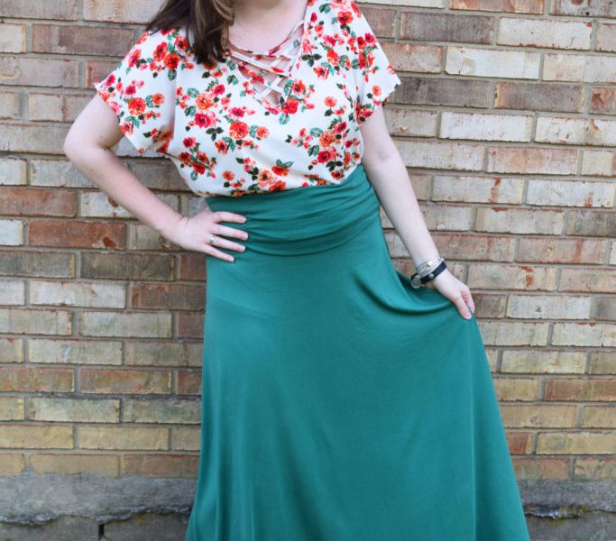 This outfit is both comfy and trendy. You can wear it to work, to a bridal shower, or on the town. The lace-up front for a top is seen everywhere. On a black top it’s perfect for a night out, on this floral top it’s fine to wear to work. Mix it with a comfortable green maxi skirt, and you’ve got yourself a perfect boho outfit. The Fashionista wore black sandals with this outfits. Some employers will allow that, but others will not. Therefore, you can pair it with flats as well. The Fashionista also has an amazing Little Mermaid and a few other inspirational Alex and Ani bracelets which deserve recognition. Alex and Ani bracelets can be added to any outfit and look fabulous.