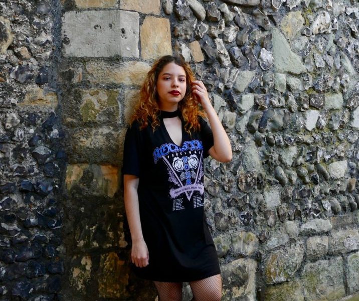 1—Shop for Trends Without Breaking the BankHalf of my wardrobe is made up of band T-shirts from Hot Topic and tours I have been to. When I first noticed the choker T-shirt trend, I thought of DIY-ing it with one of my shirts, but I love them all too much to trust myself with a pair of scissors around them. Luckily, I found a T-shirt dress with the choker trend and band aesthetic I was looking for. Boohoo USA has many of these for an affordable price.
