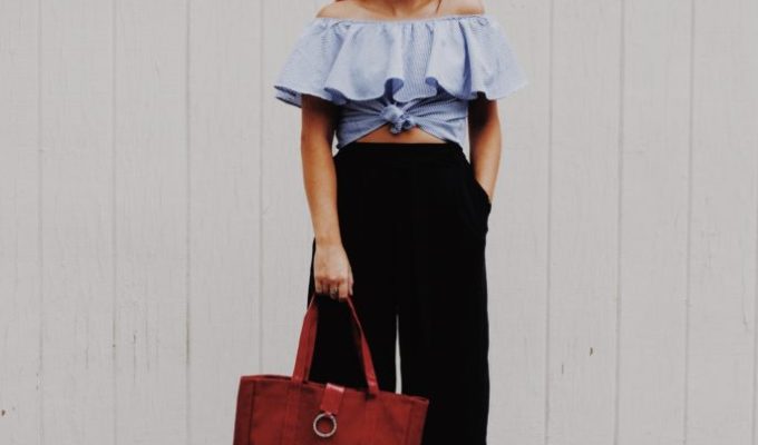 Show Your Romantic Side in Lace-Up Culottes and an Off-the-Shoulder Top