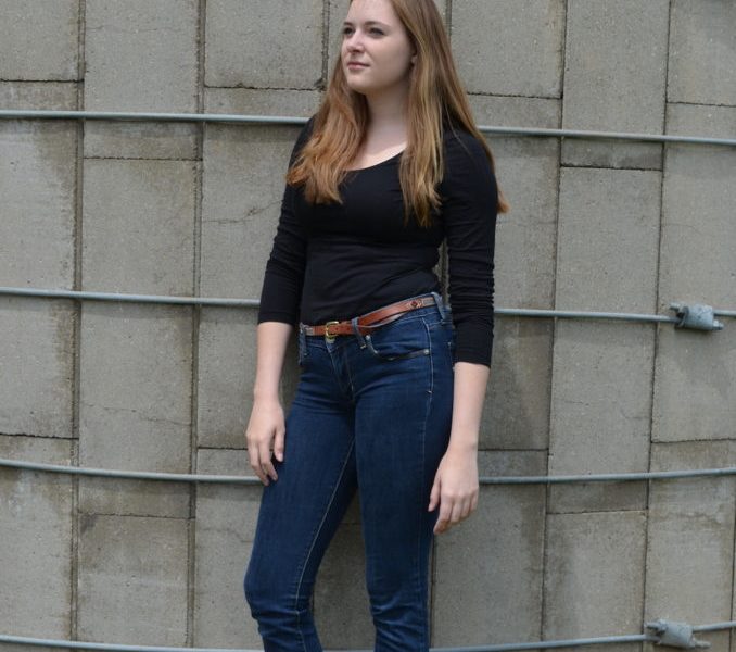This Fashionista knows exactly how to dress for the unpredictable spring weather! Cuffed jeans, cute sneakers, and a lightweight black shirt. What better things to wear for walks by the Minnesota lakes and trips to Excelsior to indulge in coffee ice cream at Lick’s Ice Cream Shop? The sneakers allow you to walk all day and enjoy the weather while allowing constant comfort while the jeans with the patterned belt add some cute details and a summer flare. Â