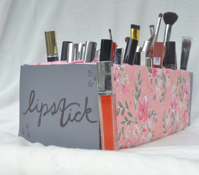 Sometimes it’s hard to keep our makeup and vanities organized. Let’s be real, makeup organizers can get pricey. This DIY makeup holder is cheap, cute, and clutter-free – plus, you can customize it! I’m going to show you step-by-step how I made this for my tools.