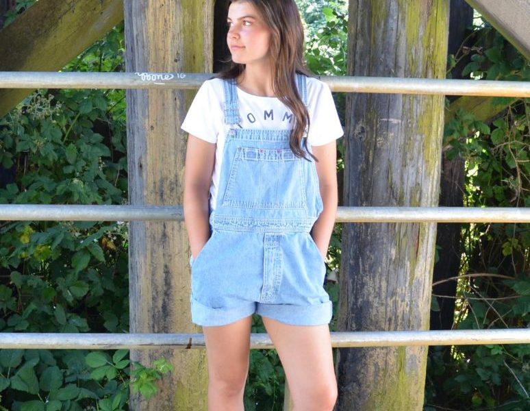 The second outfit is more on the casual side, I found these overalls at a thrift store—the best way to shop if you ask me—and cut the pants into shorts at home. I paired this with a simple white T-shirt underneath, and a pair of white tennis shoes.