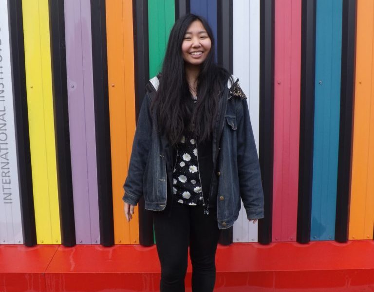 Dutch girls have a way of looking elegant and well-put together with their long coats of various colors. Although I admire their style, there was one person on campus who caught my eye. This Fashionista looked different from every other girl on campus while still looking warm. She is wearing a plain black cotton zip-up hoodie over a girly floral top that peaks out underneath. On top of that she is wearing a black rain jacket. Her outer and final layer is a boyfriend style dark-wash jean jacket. The cheetah print collar on the jacket gives it a cool and unique look. She is wearing black skinny jeans– perfect for any and every occasion. She tops it all off with black lace-up platform boots with a thick heel for comfort.