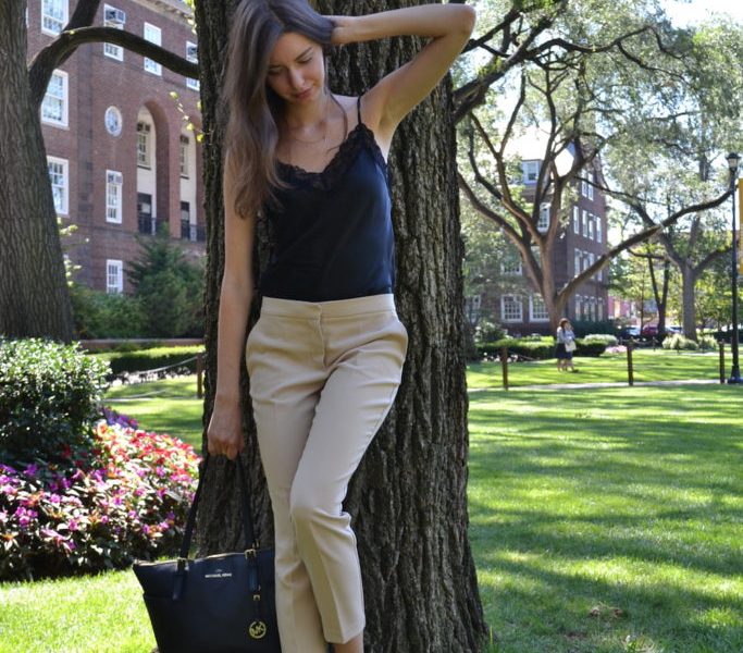 I, personally, love this trend. It’s very feminine and classic. But at the same time, it’s not the easiest trend to pull off, compared to chokers. I was following different bloggers to see how they would play with it. To me, it was important to see lingerie piece in a new light. However, with this trend, elegance is a key. Does such a small detail require so much attention? It does, in order to elevate your look. And when I saw this Fashionista on campus, she caught my attention. I had to take a picture of her.