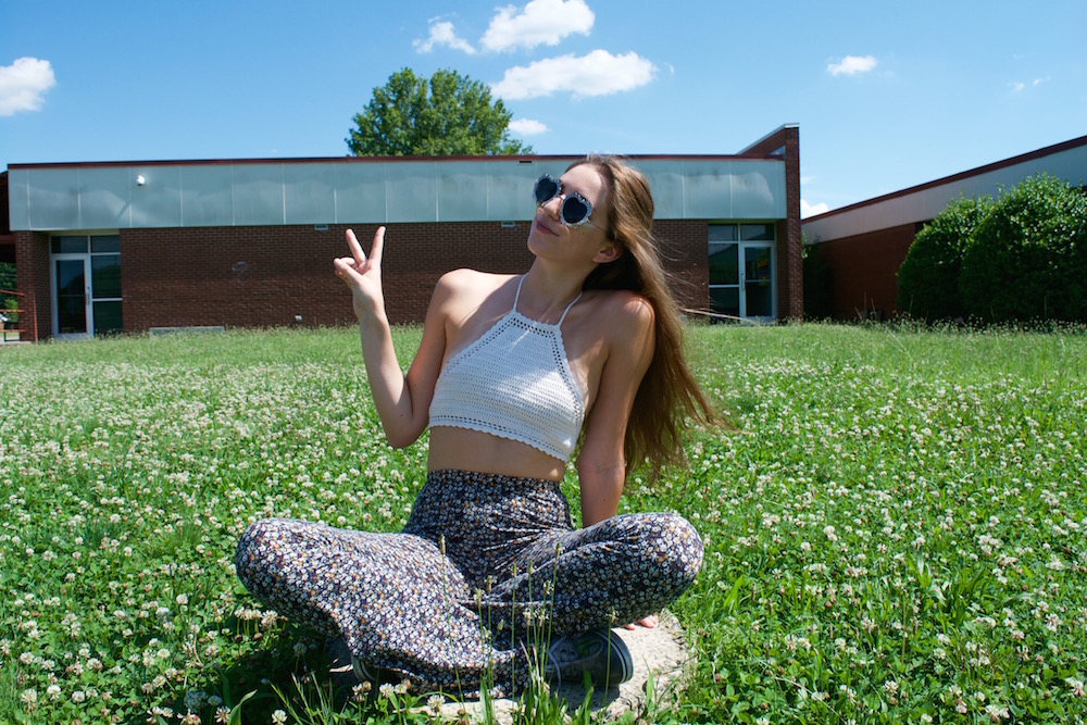 This look brings out my inner hippie and flower child. I can dance from day to night in these floral printed, boot cut pants. Pair with a crochet crop top and heart-shaped sunnies. Tip: No matter what you decide to wear, always be sure you are comfortable. You will be boppin’ around all day and don’t want anything killing your vibe, especially your outfit.