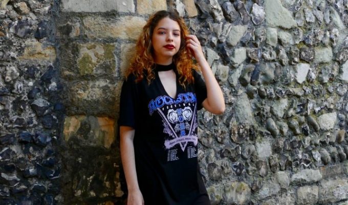 Whether it’s visiting record stores, going to a bookshop, thrifting for some cool vintage, or all of the above, you’ll want to show up in your best threads that’ll last you the whole day. You can never go wrong with a T-shirt dress, and if it’s velvet and covered with pretty patches like this one? Even better. A good pair of Doc Martens are sure to get you through all that walking as you two lovebirds have your own mini-adventure for the day.