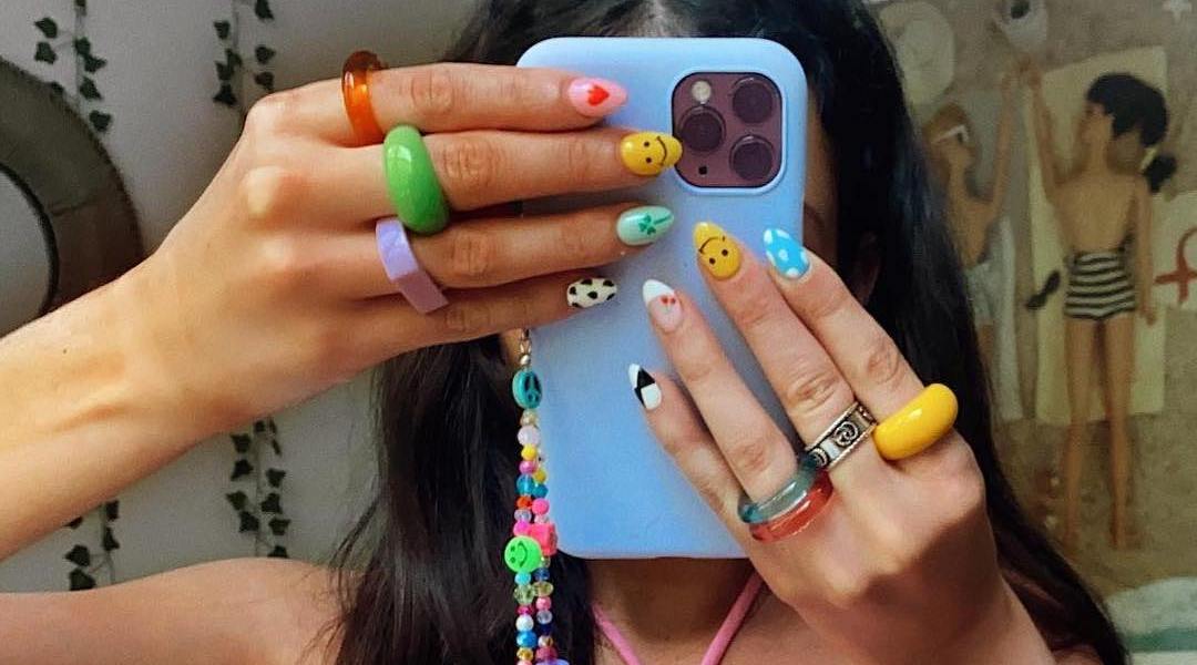Something about a fresh manicure makes me feel so put together. In fact, I’ve come to realize that booking a nail appointment is one of my favorite forms of self care. But recently I’ve been feeling inspired to switch it up from my signature single-color, round-tip mani and thankfully, the College Fashionista community has my back. Funky nail art is a 2021 trend that the CF community has embraced with open arms (okay, more like hands) and it’s safe to say I’m inspired! I’ve saved the following pics as inspo so get ready to screenshot—you’ll want to bring these photos to your next nail appointment, too.