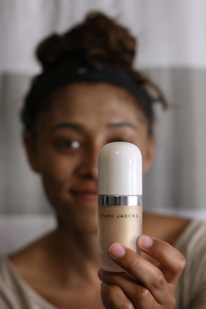 3—Marc Jacobs Dew Drops. Now let’s get dewy! Liquid highlighter is going to really enhance your glow. You can add a few drops into your favorite foundation and mix it in for an allover glow or focus on your high points and apply it on your cheek bones, forehead, and chin. I apply it by first pumping a drop onto the back of my hand and using my fingertip to dot on where I want it. Then I blend it in with a damp beauty blender.