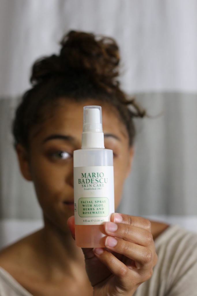 1—Mario Badescu Facial Spray with Rosewater. This light and refreshing facial spray is the perfect way to hydrate your skin. Give your face a few sprits, and then let it soak in. It contains herbal extracts and rosewater, which is safe for all skin types.