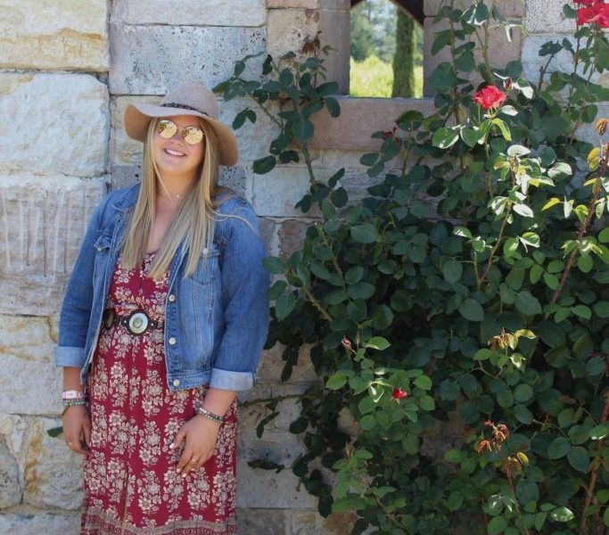 For a recent trip to Napa, California, I opted to keep my styling of the maxi dress casual. I styled mine with a brown leather belt to synch in the waist of the dress, a denim jacket, and my favorite flat lace-up sandals. I also styled it with a brown felt hat, just to give the look a little more bohemian flare.