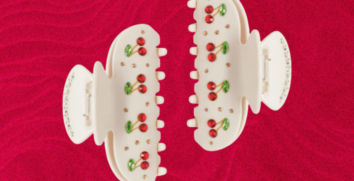 Coming in two colors, this claw clip is decorated in bright bedazzled cherries that adds a sweet touch. From dishing on reviews and personal experience, a huge plus about Emi Jay’s clips is that the claw is made to collect the right amount of hair for you. Whether your hair type is thin straight, thick curly, soft wavy or box braided; it packs in the perfect bunch of locks for your pleasure. Making it an easier way to style hair for when you have 5 minutes or 50 minutes to get ready for your next course.