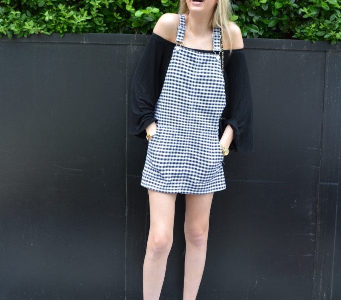 The easiest way to make gingham more current is to opt for a black-and-white pattern, as opposed to the traditional blue or red checkered print. Black and white instantly curates an edgy, yet sophisticated look. The overall dress pictured is the perfect addition to your summer wardrobe because it is so on trend while also being an easy piece to style. Adding simple white sneakers and a black bodysuit allows the pattern to be the sole focus of the outfit.