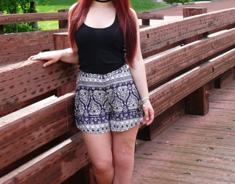 Another summer favorite of mine is printed shorts. I own pairs of shorts with Aztec, mandala, and floral designs. The elastic waistband of these loose and flowy shorts makes them very comfortable to wear. It also gives my outfit a beachy and Bohemian vibe. I usually wear them with a solid colored tank top, but they can also be worn with a graphic T-shirt and flats for a more understated look. Also, if it’s a little breezy out, a leather or denim jacket looks nice with them. Intricate Mandala and Aztec designs have influenced my personal style, especially in the summer.