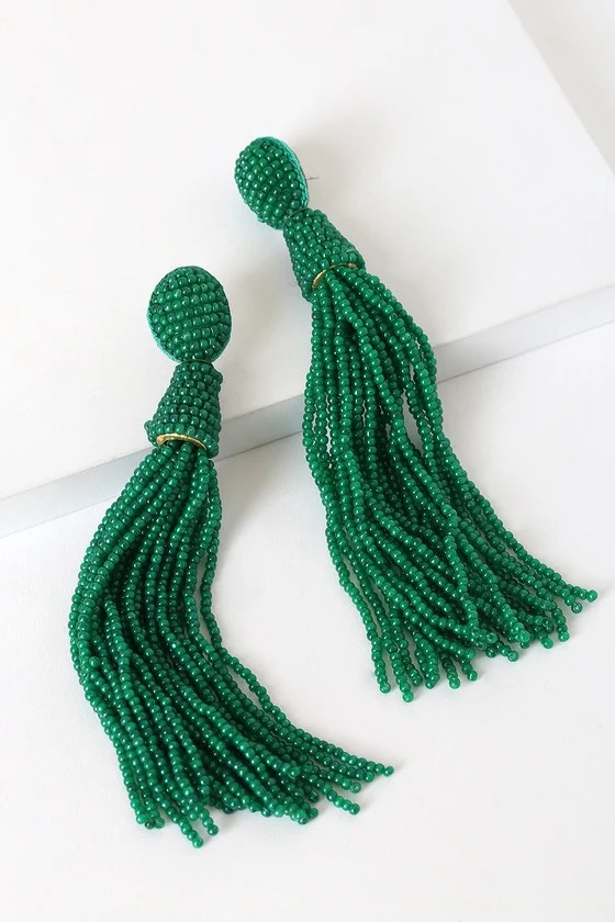 Lulu's Bead the Way Green Beaded Tassel Earrings